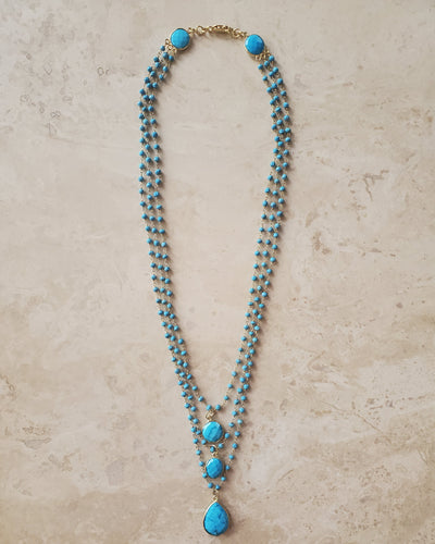 Turquoise, Onyx, or Freshwater Pearl Long Tassel Necklace