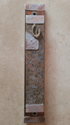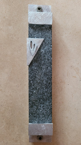 Brushed Aluminum and Jerusalem Stone Mezuzah
